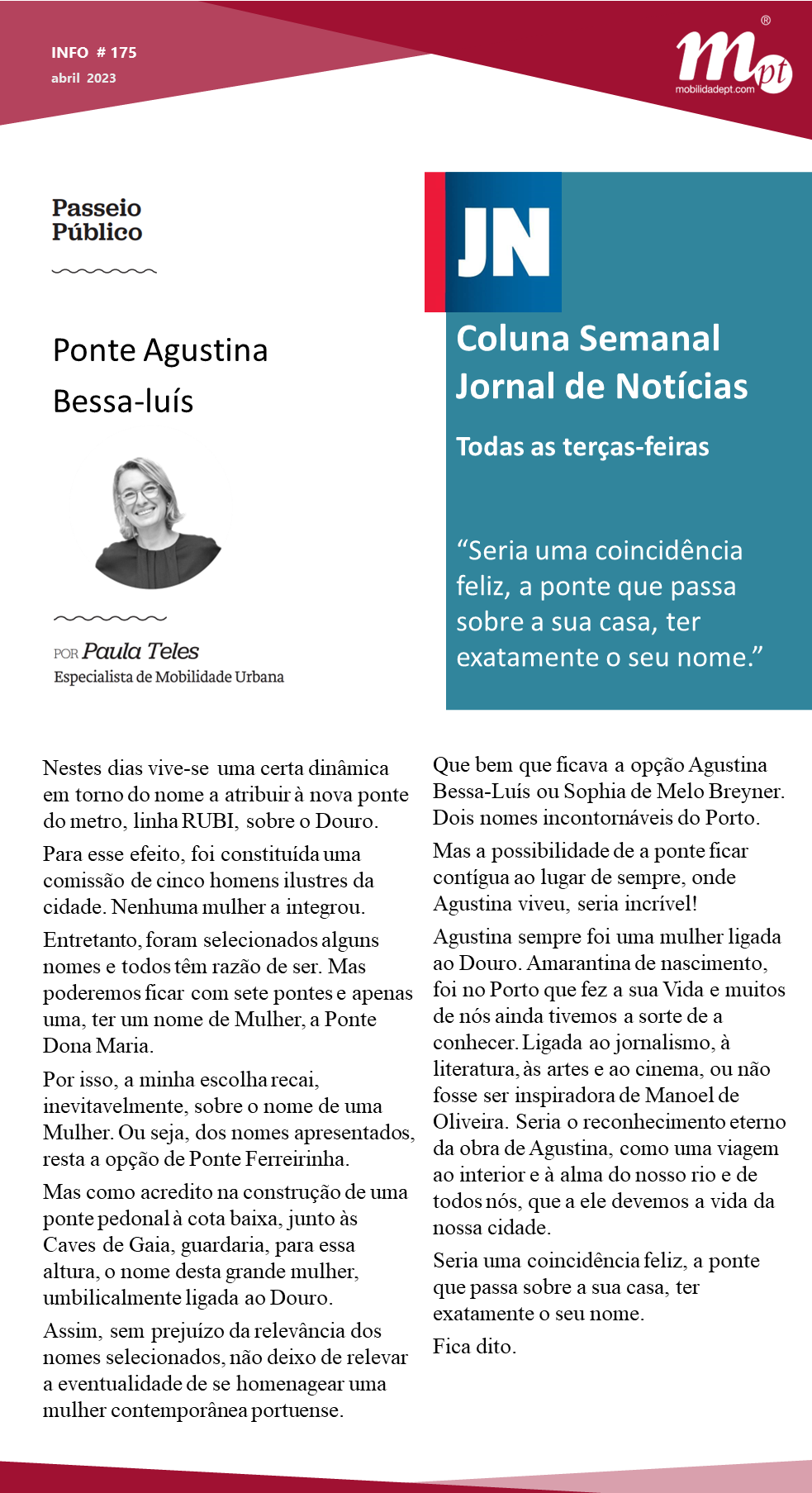 Esta terça-feira, na coluna semanal do JN, Paula Teles com o artigo de opinião Ponte Agustina Bessa-Luís