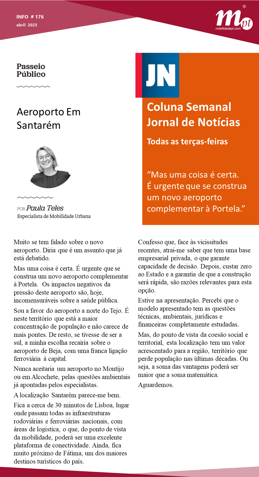 Esta terça-feira, na coluna semanal do JN, Paula Teles com o artigo de opinião Aeroporto de Santarém.