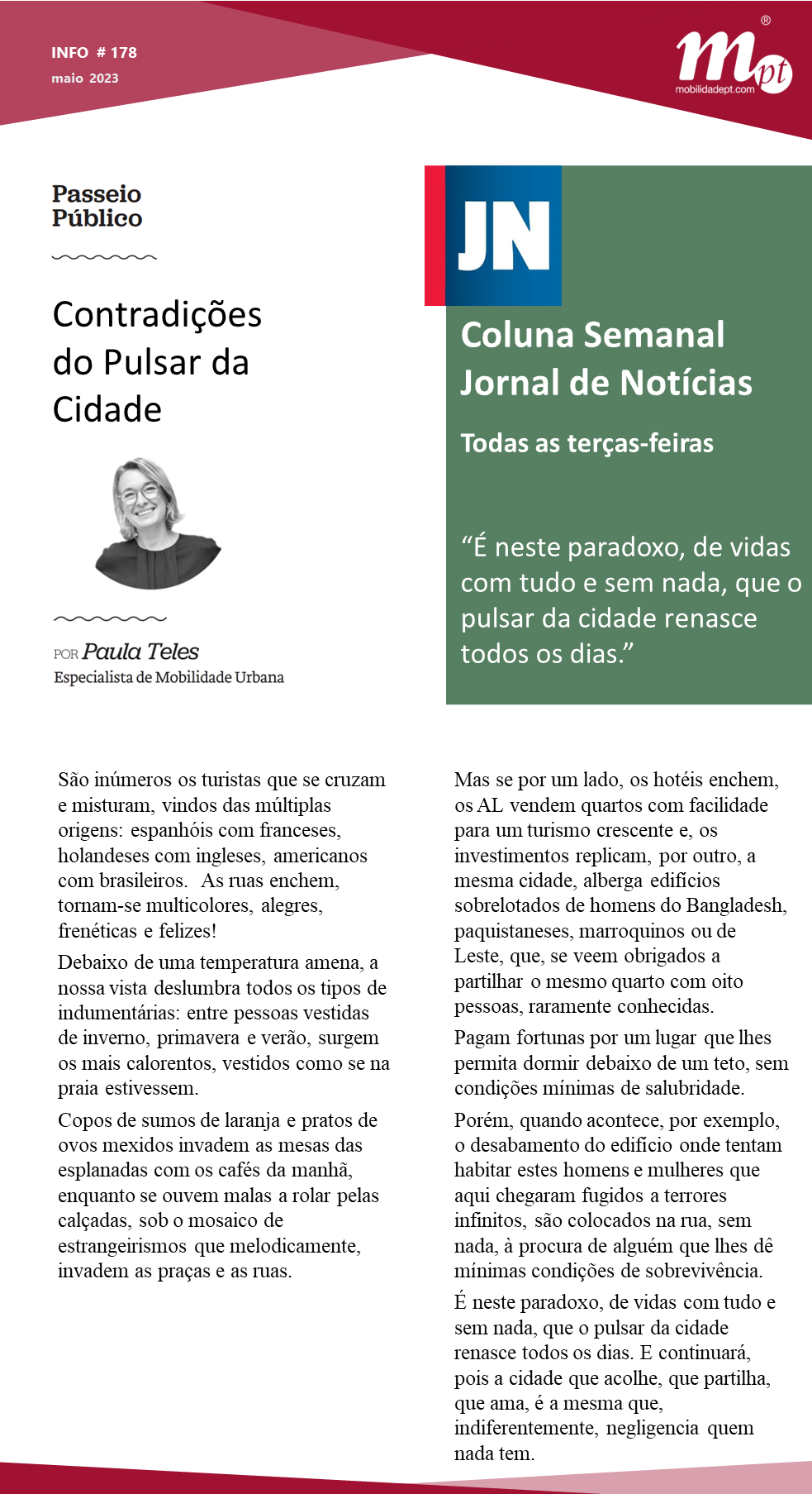 Esta terça-feira, na coluna semanal do JN, Paula Teles com o artigo de opinião “Contradições do Pulsar da Cidade“