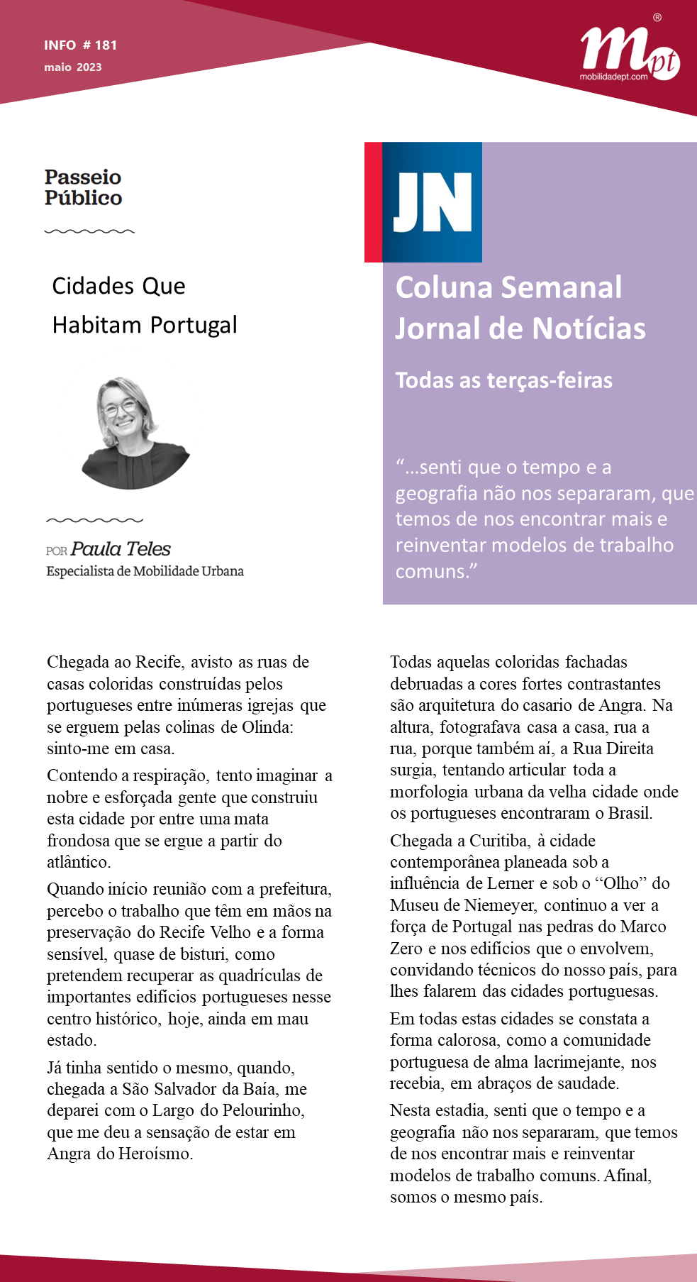 Esta terça-feira, na coluna semanal do JN, Paula Teles com o artigo de opinião “Cidades Que Habitam Portugal “