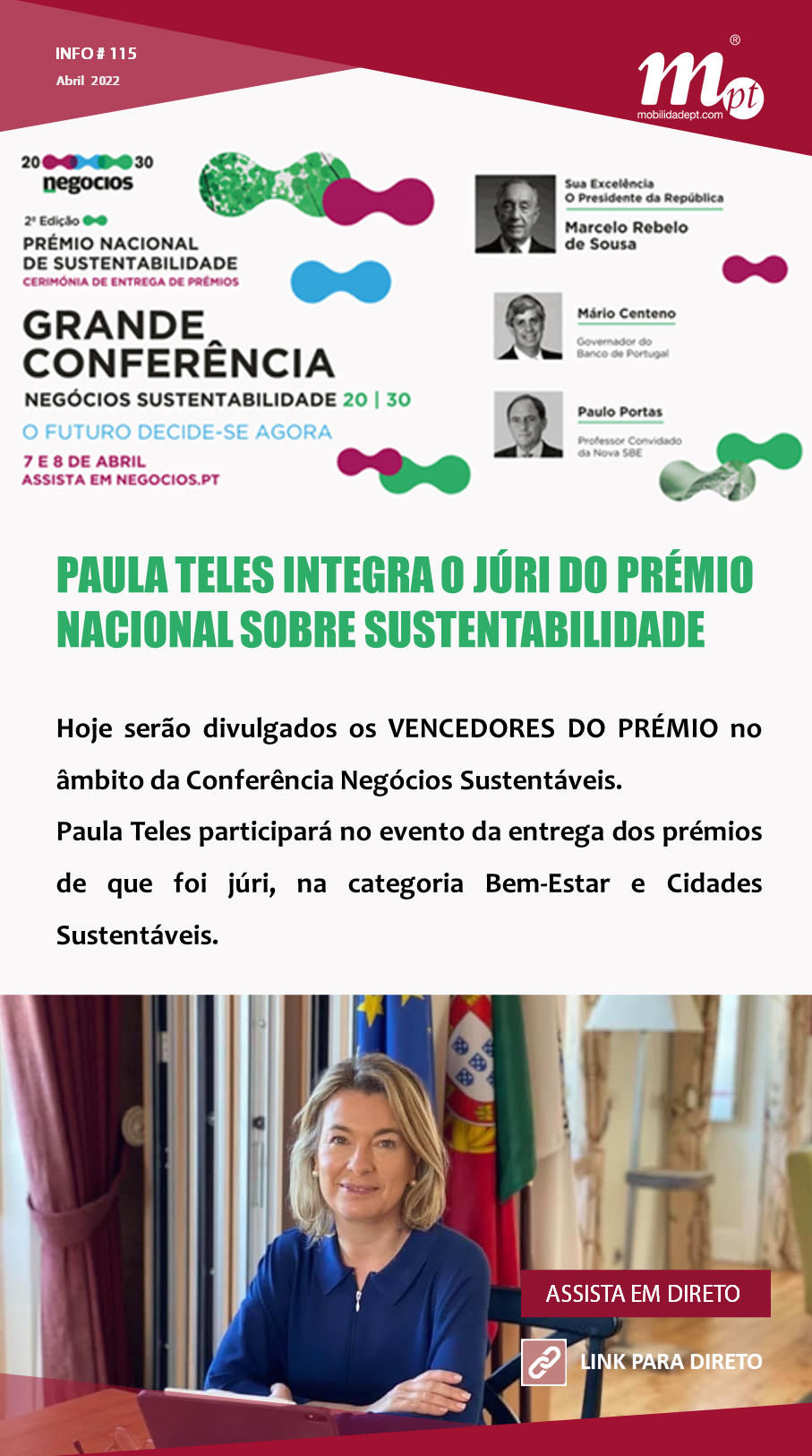 Paula Teles participará no evento da entrega dos prémios de que foi júri, na categoria Bem-Estar e Cidades Sustentáveis.