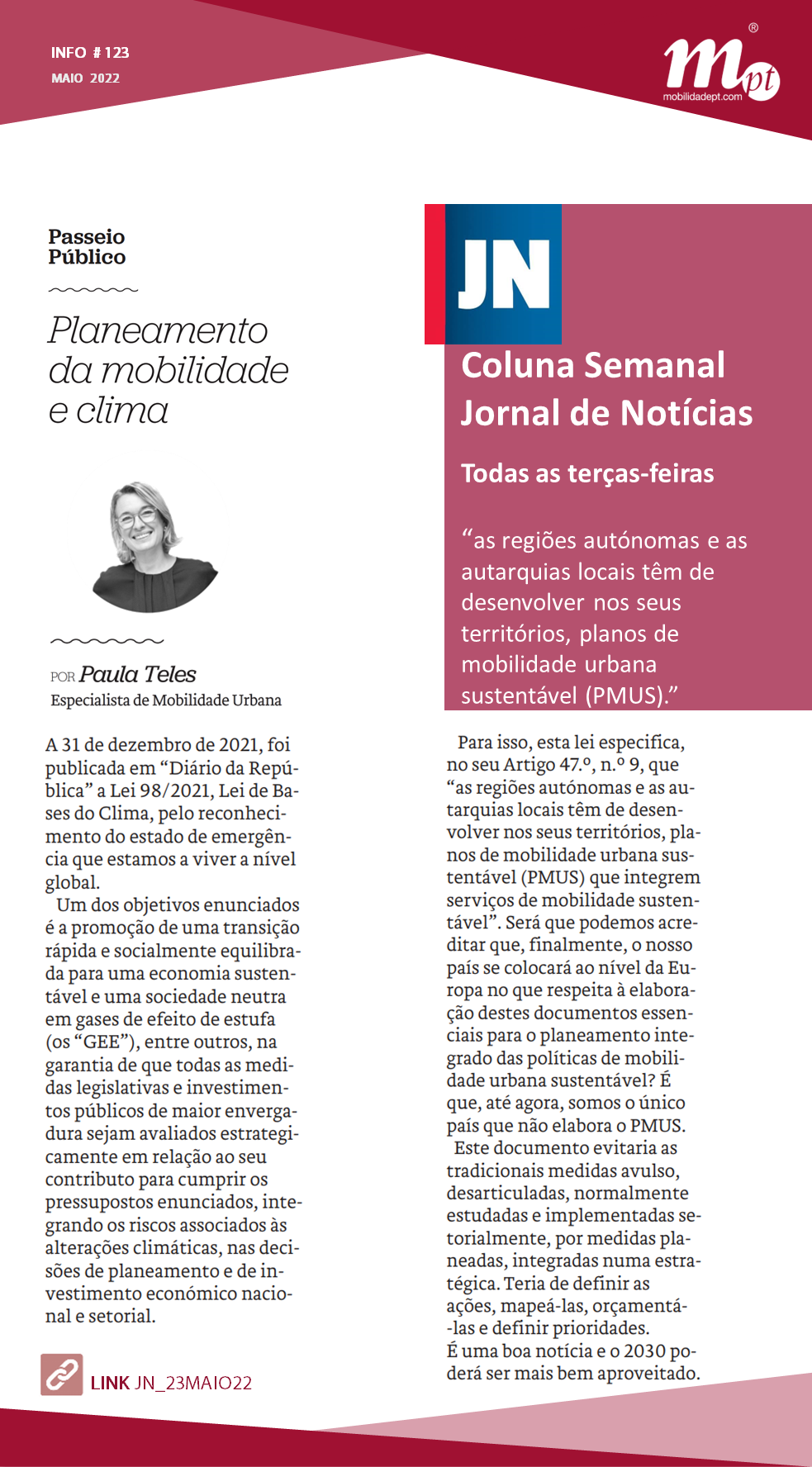 Hoje, uma análise de Paula Teles sobre a Lei de Bases do Clima e as suas implicações no planeamento da mobilidade!
