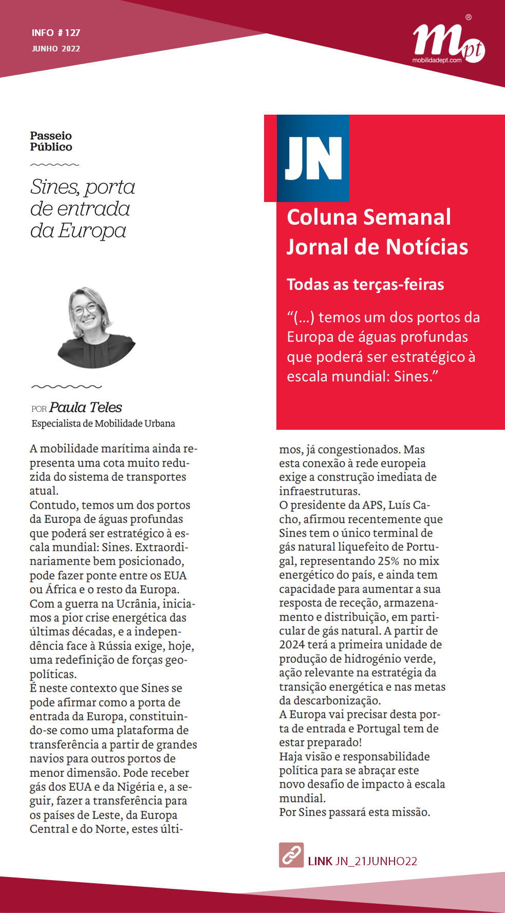 INFO 127 Paula Teles colunista JN “Sines, porta de entrada da Europa”