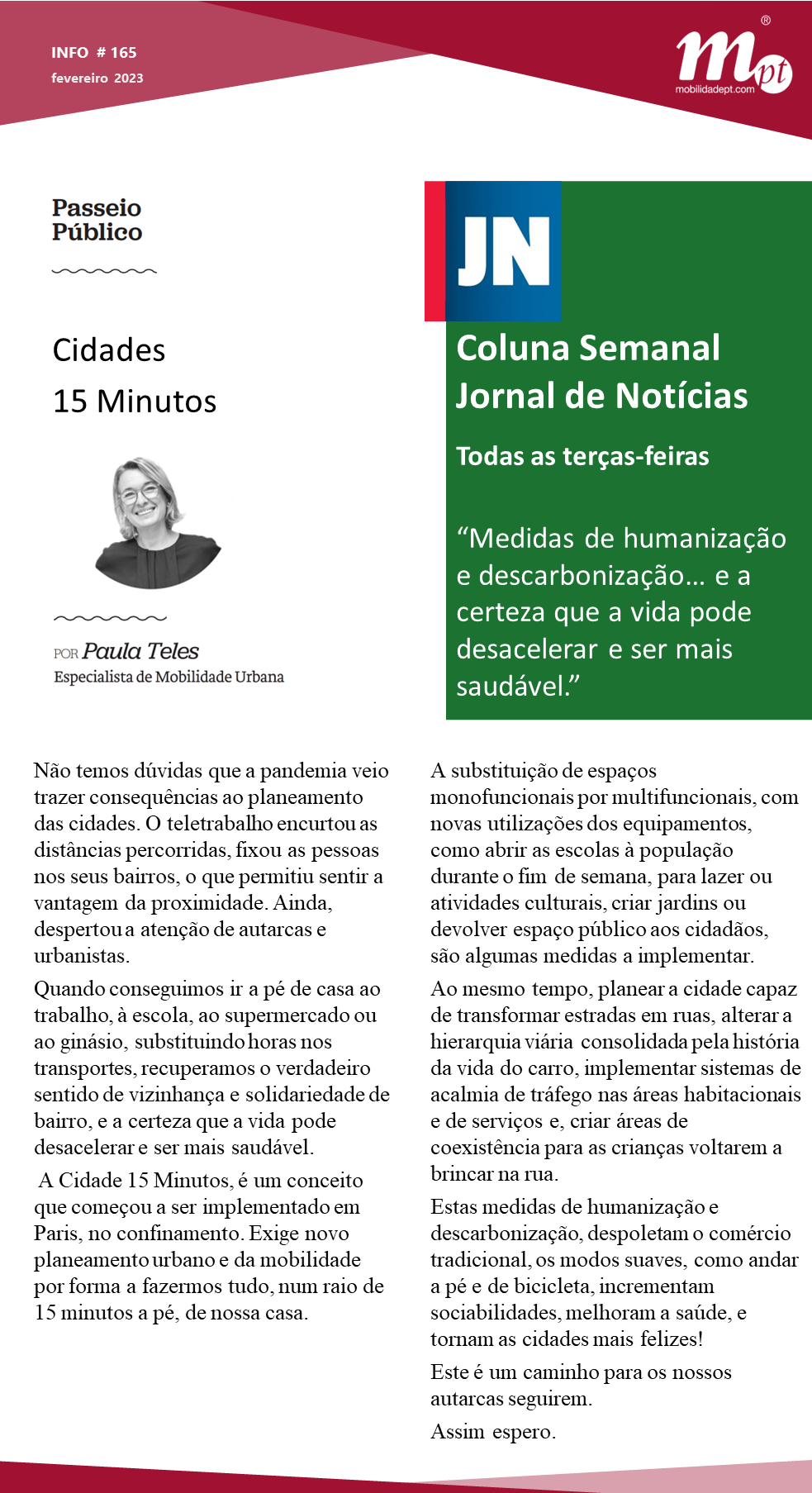 INFO 165 Paula Teles colunista JN “Cidades 15 Minutos”