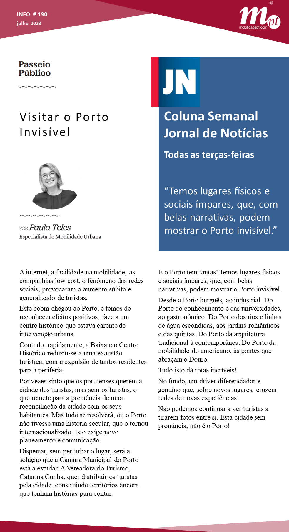 Esta terça-feira, na coluna semanal do JN, Paula Teles com o artigo de opinião “Visitar o Porto Invisível”