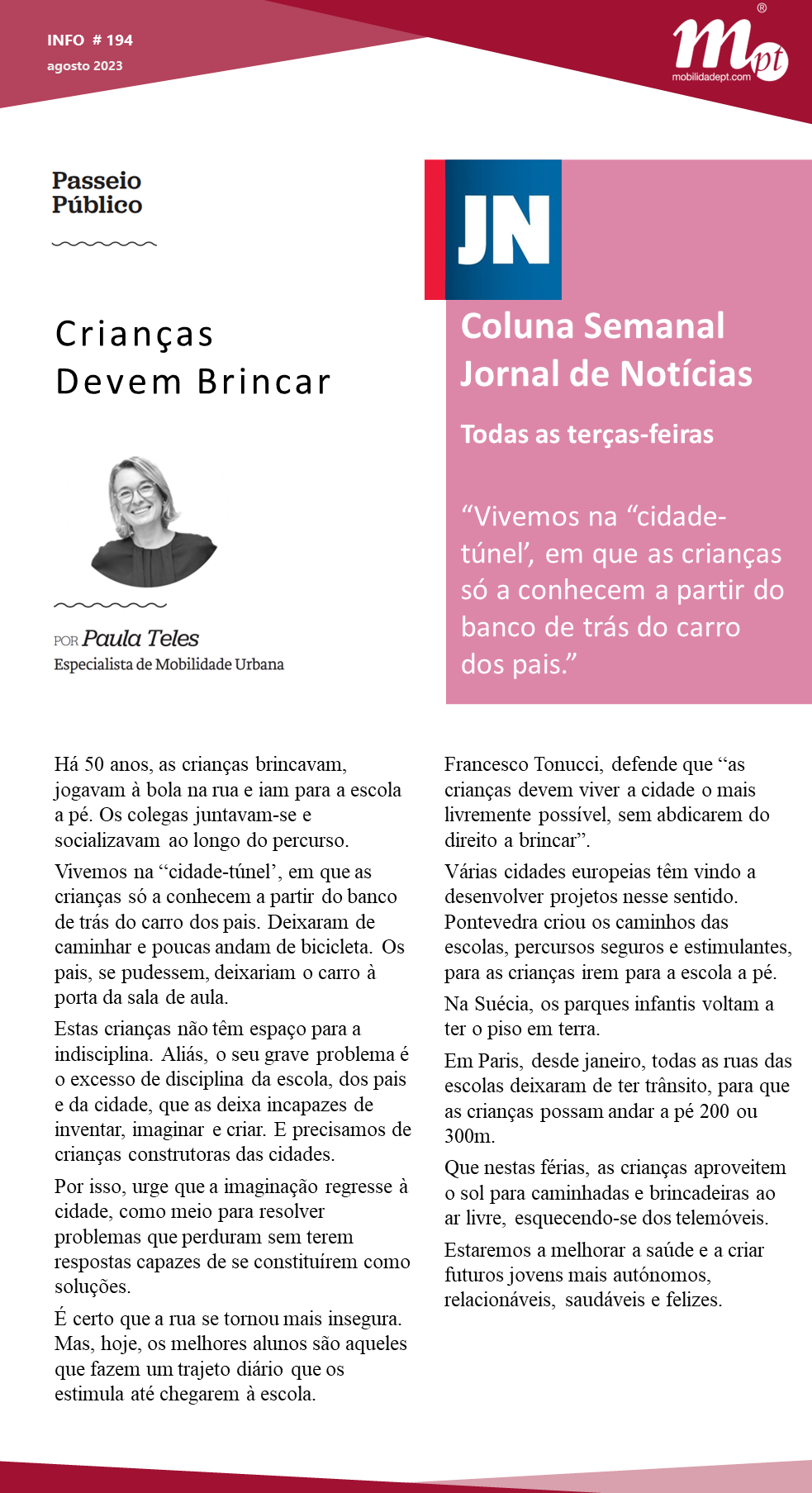 Esta terça-feira, na coluna semanal do JN, Paula Teles com o artigo de opinião Crianças Devem Brincar