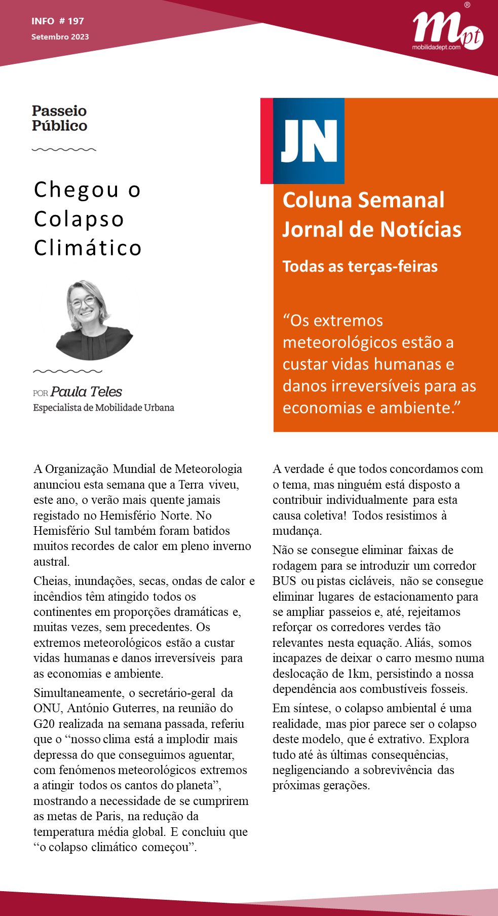 Esta terça-feira, na coluna semanal do JN, Paula Teles com o artigo de opinião Chegou o Colapso Climático”