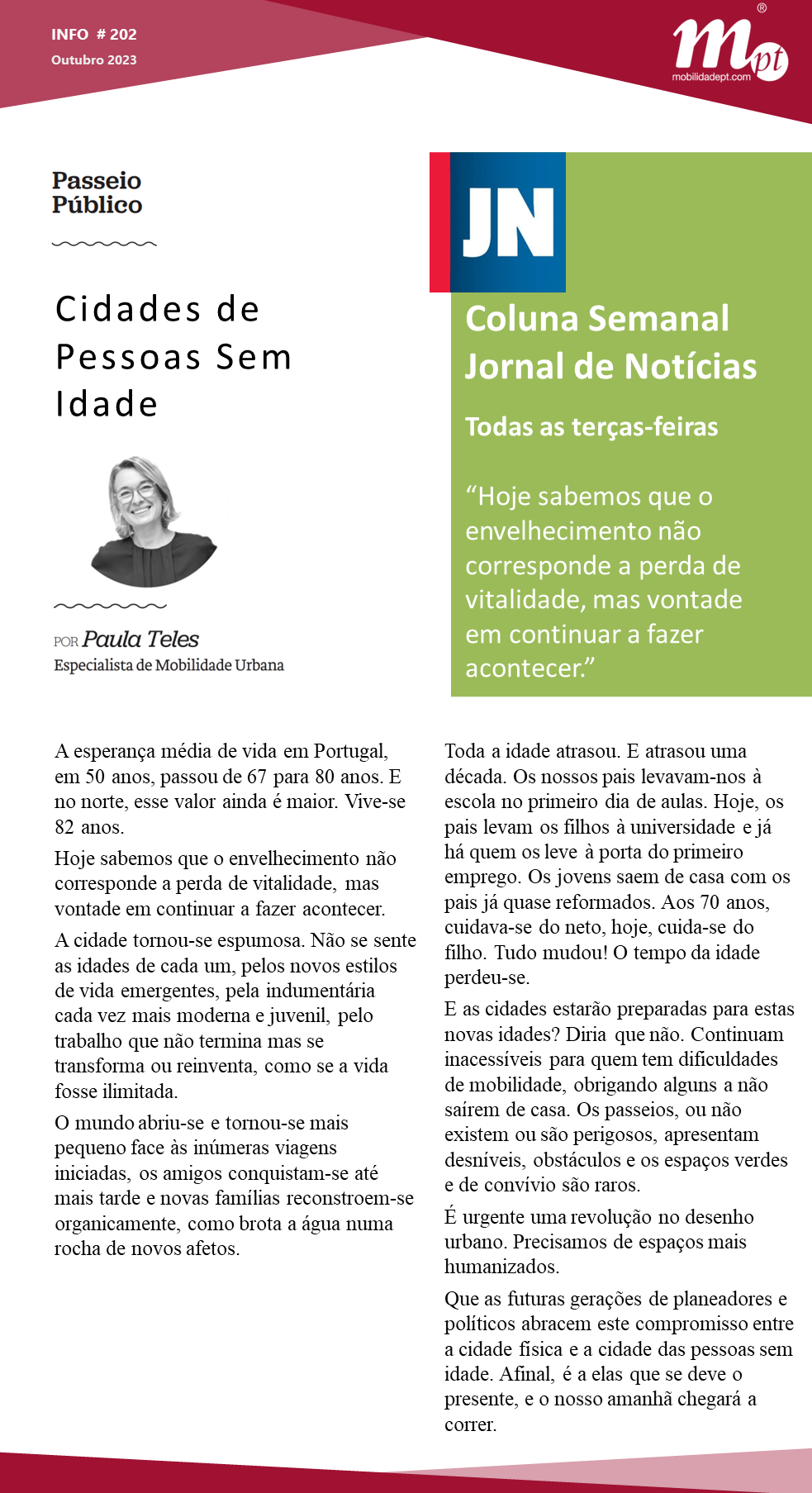 Esta terça-feira, na coluna semanal do JN, Paula Teles com o artigo de opinião Cidades de Pessoas Sem Idade