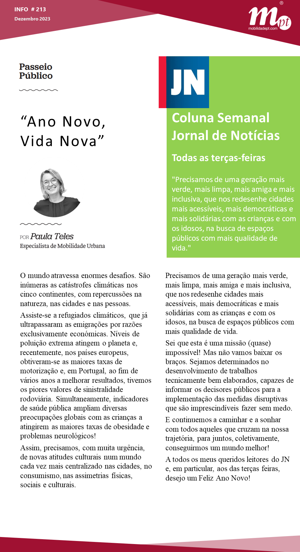 Esta terça-feira, na coluna semanal do JN, Paula Teles com o artigo de opinião “Ano Novo, Vida Nova”