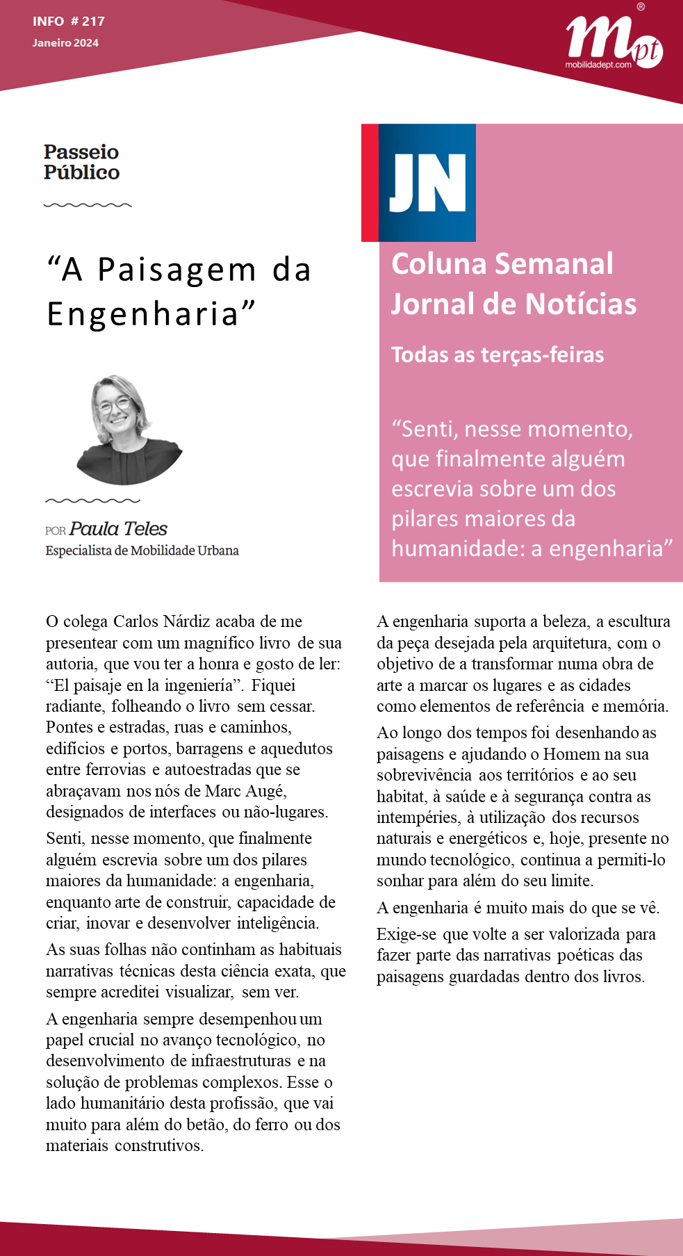 Esta terça-feira, na coluna semanal do JN, Paula Teles com o artigo de opinião “A Passagem da Engenharia”