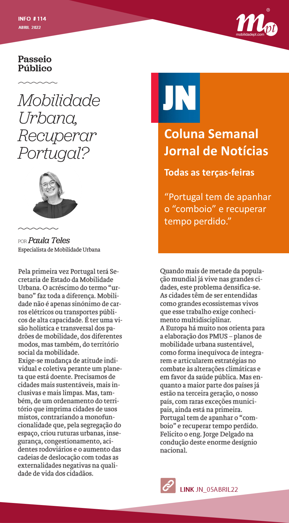 INFO 114 Paula Teles colunista JN “Mobilidade Urbana, Recuperar Portugal?”