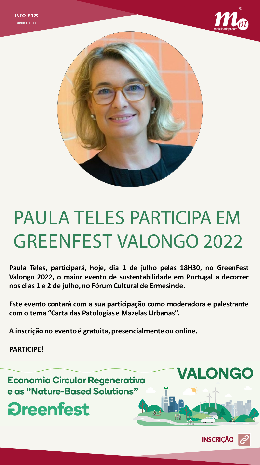 Paula Teles participa como moderadora e oradora no primeiro dia do Greenfest Valongo 2022, um evento de sustentabilidade em Portugal.