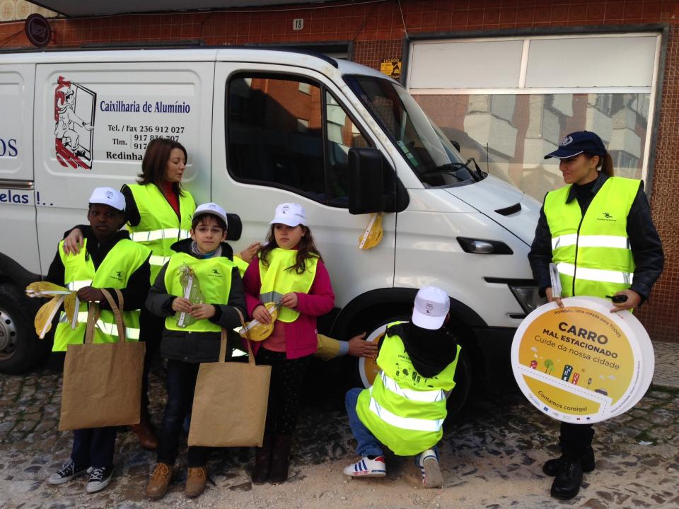 - CARRO BEM ESTACIONADO: Os meninos deram os parabéns ao condutor pendurando, com um elástico, um carrinho de “BEM ESTACIONADO” no retrovisor com informação tópica sobre os objetivos desta campanha.